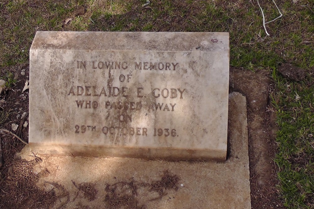 Inscriptions:in loving memory / of / Adelaide E Goby / who passed away / on 29th October 1936