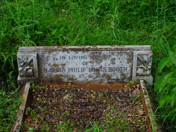 Inscriptions:in loving memory / of / Martin Philip Lucas Booth / died 27 Dec 1952 / aged 3 1/2