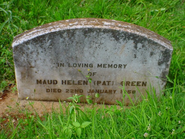 Inscriptions:in loving memory / of / Maud Helen (Pat) Green / died 22nd January 1958