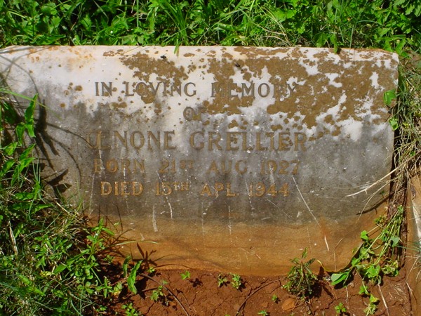 Inscriptions:in loving memory / of / Oenone Grellier / born 21st Aug 1927 / died 15th Apl 1944