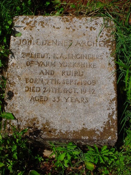 - Inscriptions:John Dennes Archer / 2nd Lieut E. A. Engineers / of Yarm Yorkshire / born 7th Sept 1909 / died 24th Oct 1942 / aged 33 years