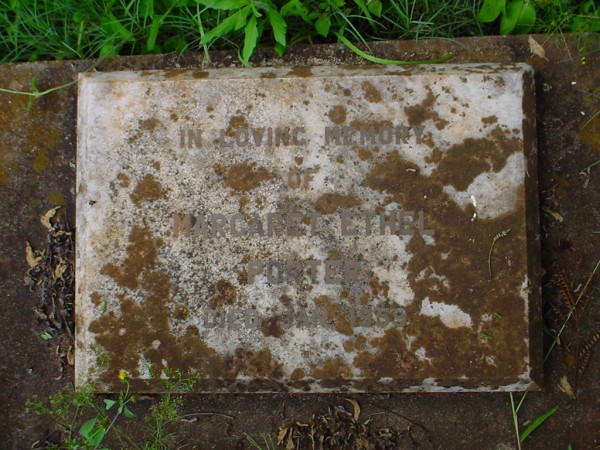 Inscriptions:in loving memory / of / Margaret Ethel Porter / died Jan 1959