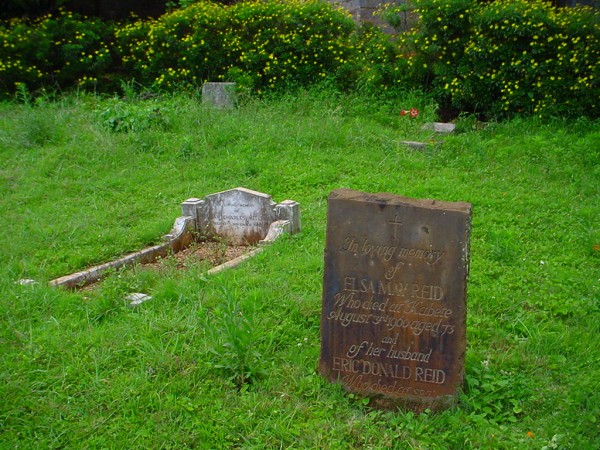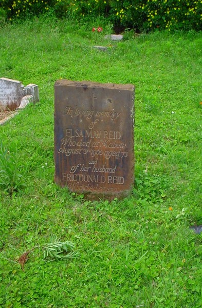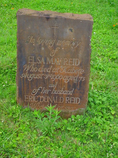 - Inscriptions:in loving memory / of / Elsa Mary Reid / who died at Kabete / August 3rd 1960 aged 73 / and / of her husband / Eric Donald Reid / who died at sea / October 17th 1957 aged 73