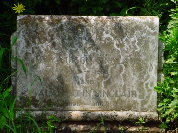 Inscriptions:in loving memory / of / May Gibson Sinclair / 1897 - 1966 / and / Alan John Sinclair / 1896 - 1967
