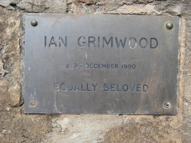 - Inscriptions:Ian Grimwood / d 26 December 1990 / equally beloved