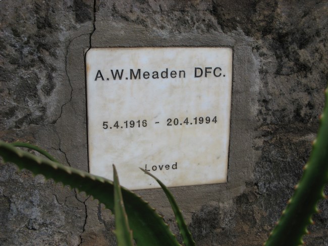 Inscriptions:A W Meadon D.F.C. / 5.4.1916 - 20.4.1994 / loved