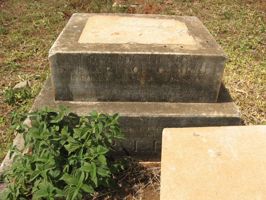 - Inscriptions:Edward Henry / St Lawrence Clarke / Baronet C.M.C. D.S.O. / Lieutenant Colonel / the Worcestershire Regiment / born April 17th 1857 / died May 7th 1926
