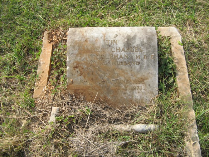 - Inscriptions:"Jim" / James Charles / Coleman M.B. / loving husband / of / Kate / born 30th November 1899 / died 11 July 1971