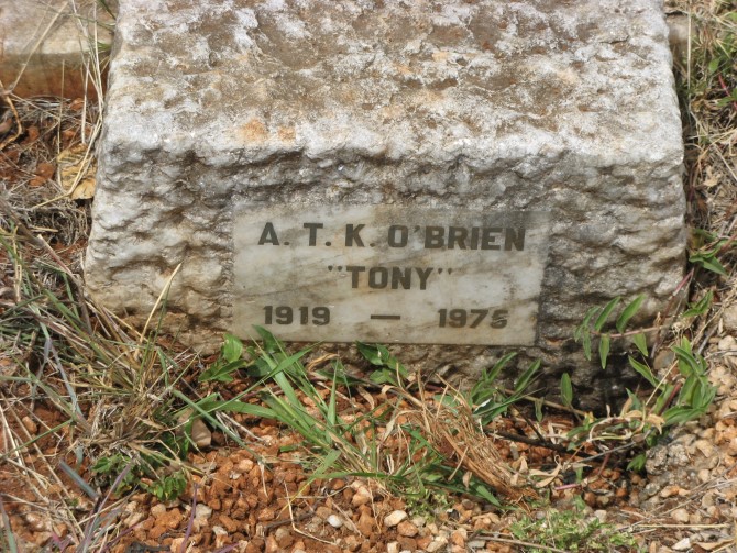 - Inscriptions:A T K O'Brien / "Tony" / 1919 - 1975
