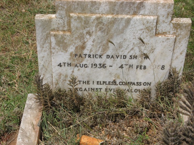 Inscriptions:Patrick David Shaw / 4th Aug 1936 - 4th Feb 1988 / the helpless compassion / agains evil valour