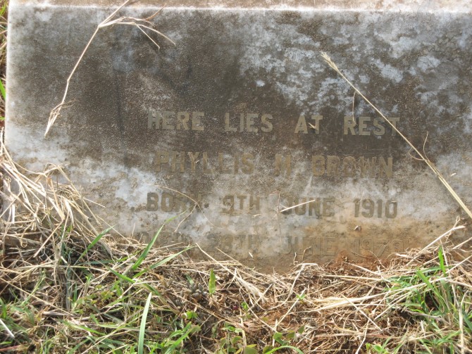 Inscriptions:here lies at rest / Phyllis M Browm / born 9th June 1910 / Died 28th June 1970
