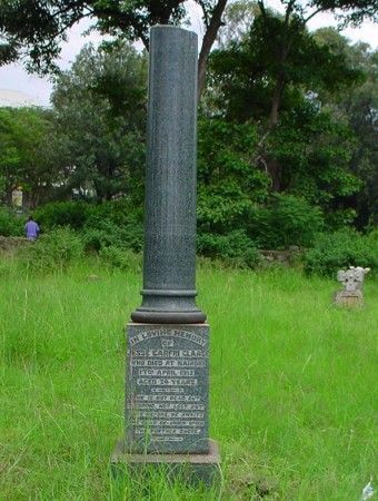 - Inscriptions:in loving memory / of / Jesse Carfri Claase / who died at Nairobi / 17th April 1913 / aged 34 years / he is not dead, but / sleeping, not lost, but / gone before, he awaits / the glad re-union upon / the further shore