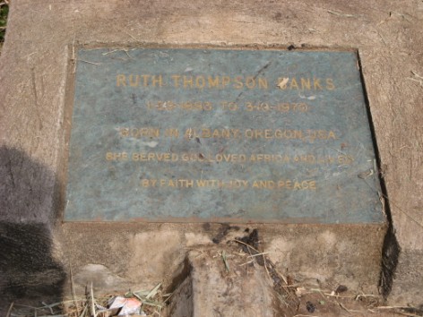 - Inscriptions:Ruth Thompson Banks / 1-29-1898 to 3-10-1970 / born in Albany, Oregon, USA / she served God, loved Africa and lived / by faith with joy and peace